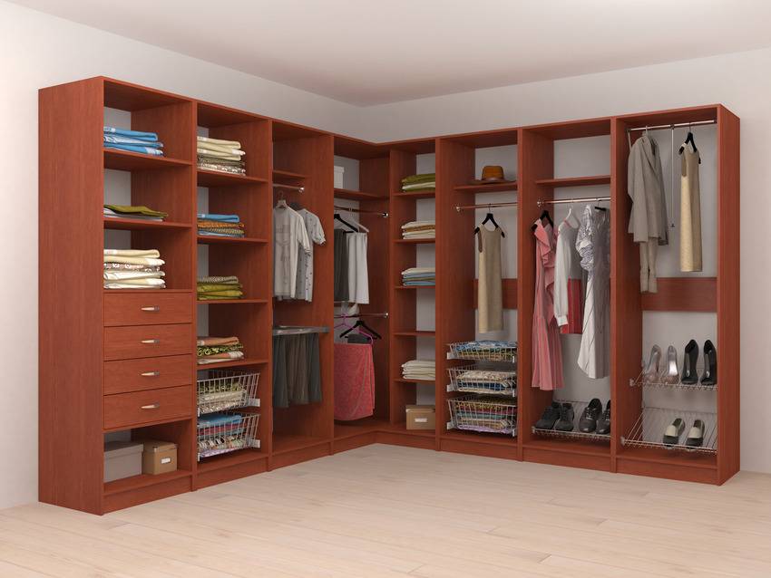 Наполнение углового шкафа в спальне