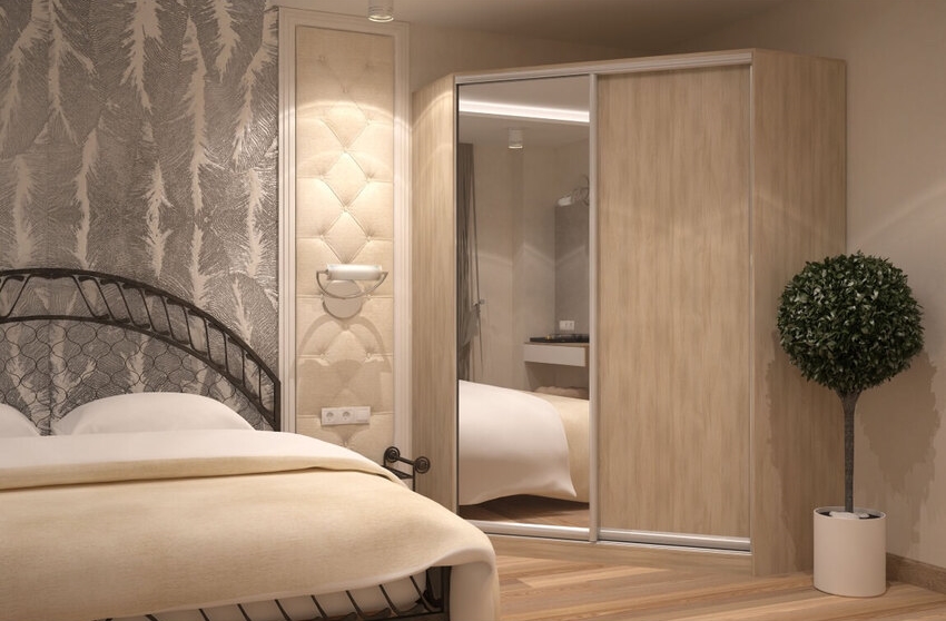 При выборе углового шкафа с зеркалом или без в спальную комнату стоит обращать внимание на то, чтобы он идеально вписывался в помещение