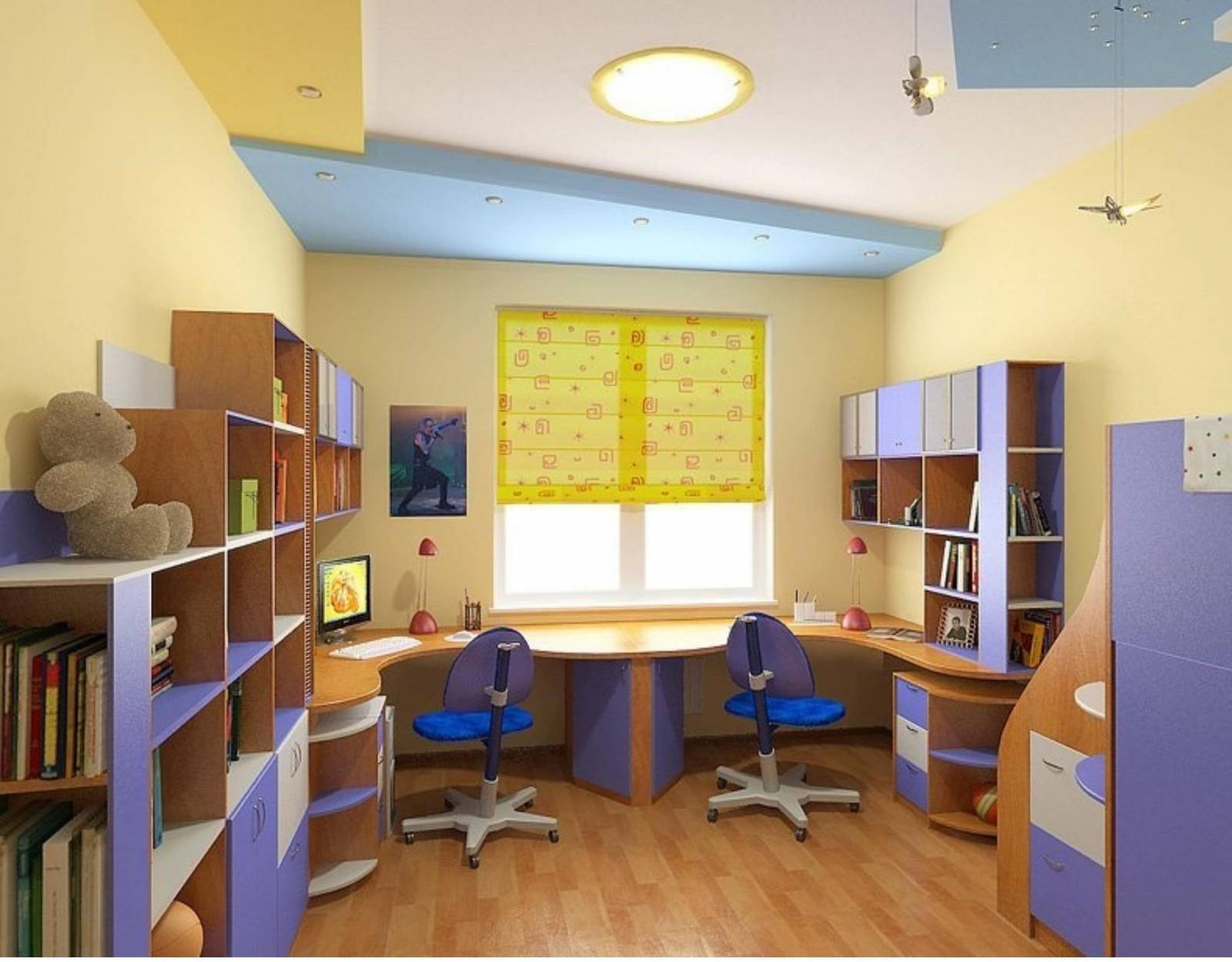 На выбор меблировки комнаты влияют несколько факторов: площадь помещения, число школьников, пол и возраст детей. В небольших комнатах дизайнеры предлагают устанавливать мебельные конструкции, объединяющие несколько зон.