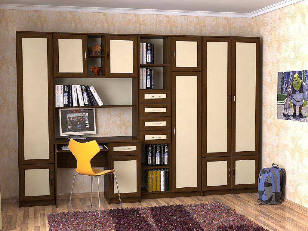 Можно приобрести школьнику отдельный письменный стол, но для правильной организации рабочего пространства лучше, если он будет входить в состав мебельной стенки. Это позволяет оформить комнату в одном стиле. Есть разные варианты готовых уголков: