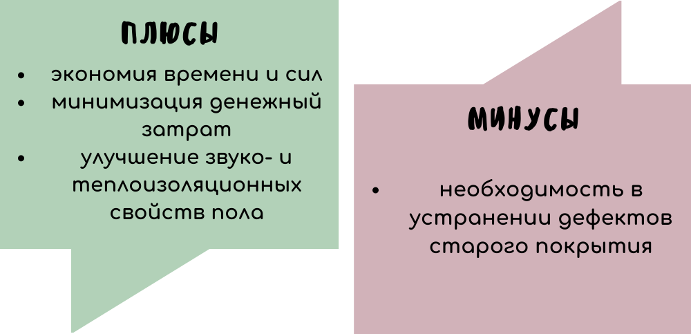 - сокращение трудовых и временных затрат, так как не требуются демонтаж старого деревянного пола, уборка строительного мусора и выравнивание половой основы бетонной стяжкой;
