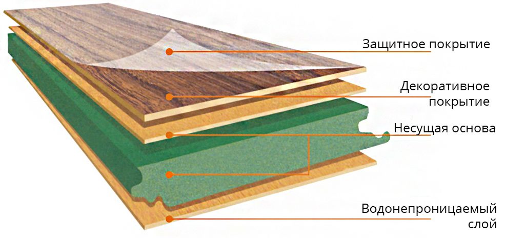- под основным находится влагостойкий слой, уравновешивающий тонкий пластик или картон, необходимый для балансировки;