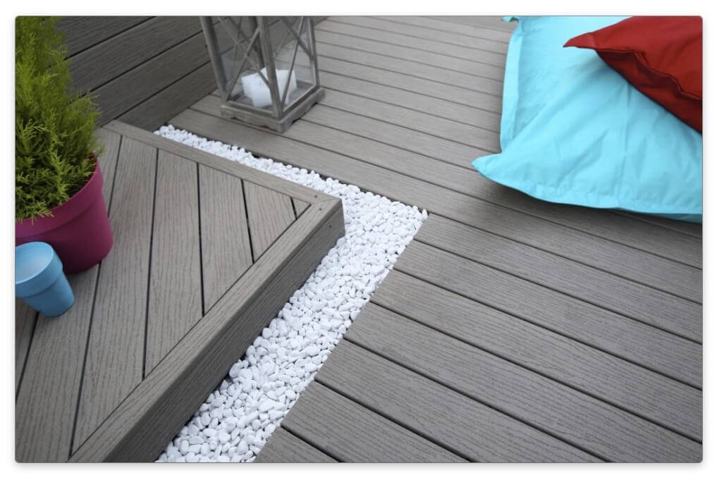 - для удаления влаги дождей и растаявшего снега под декингом оборудуют дренаж и водостоки;