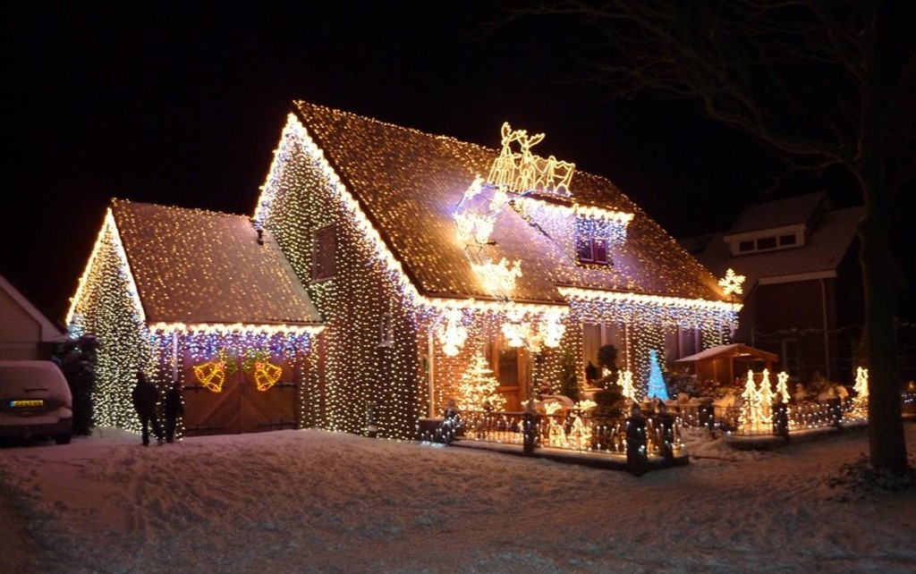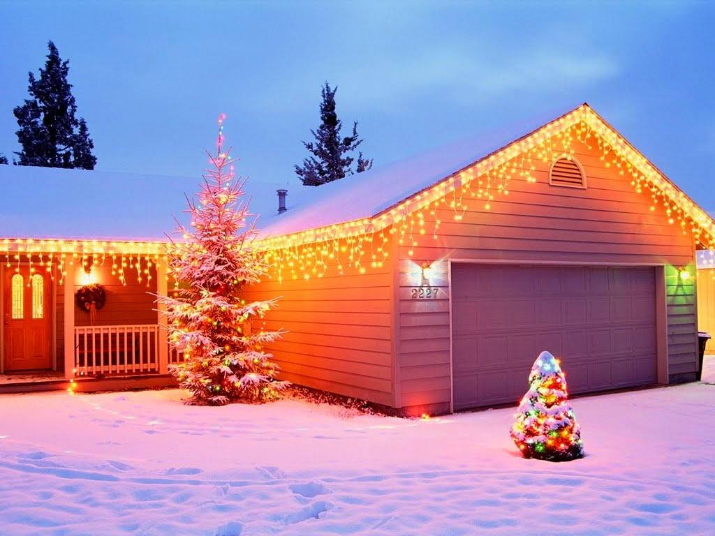 Звезды с неба надо перенести в сад! Как это сделать? Огоньками украсить садовые дорожки, живую ель, а также дом снаружи. Идея украшения дома снаружи перебралась к нам из Америки. Но наши сограждане не привыкли тратить бешеные деньги на такое украшение.