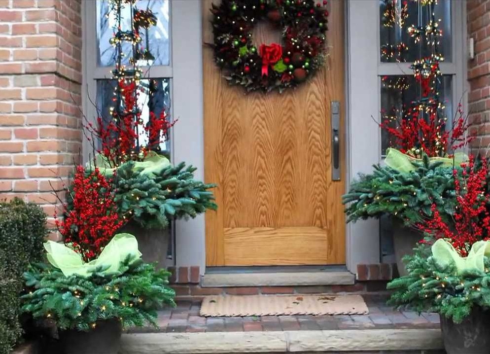 Помимо украшения дома к Новому году внутри, для создания наступления торжества, делается новогоднее оформление входа в дом, украшается крыльцо, двор и фасад загородного дома.
