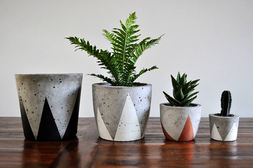 Снаружи мастер может декорировать бетонное кашпо по желанию.
