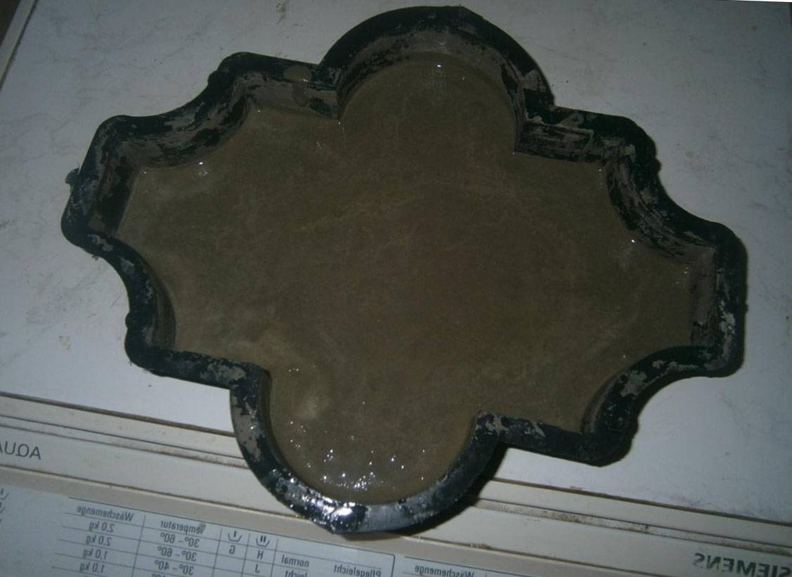 Чтобы садовая плитка для дорожек своими руками имела четкий контур и красивый внешний вид, нужно грамотно заливать готовым цементным раствором формочки. Делают это следующим образом: