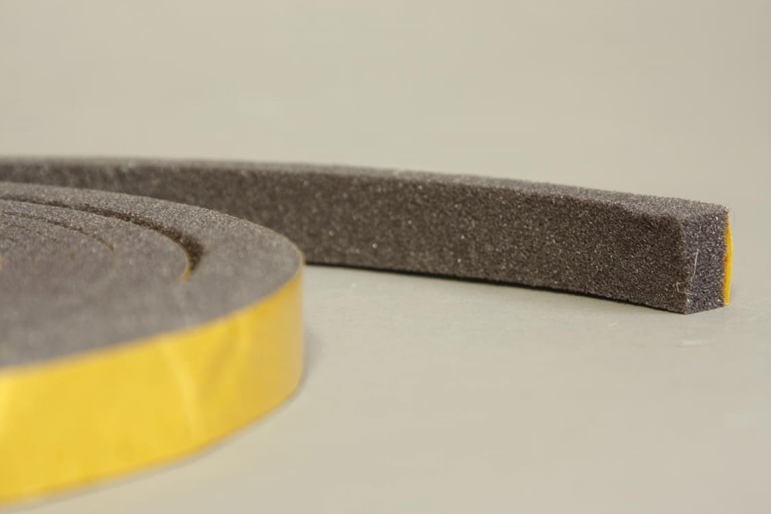 Поролоновый уплотнитель является самым доступным вариантом. Выпускаются в виде самоклеящихся лент. Отличается невысокими шумо- и теплоизоляционными свойствами. Легко монтируется, но имеет ограниченный срок службы: всего 1 – 3 месяца. Со временем уменьшается в размерах.