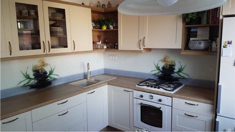 - возможность легко удалить грязь с фартука. Даже использование химических чистящих средств не вредит цвету панели, а фартук может радовать своим блеском долгие годы.