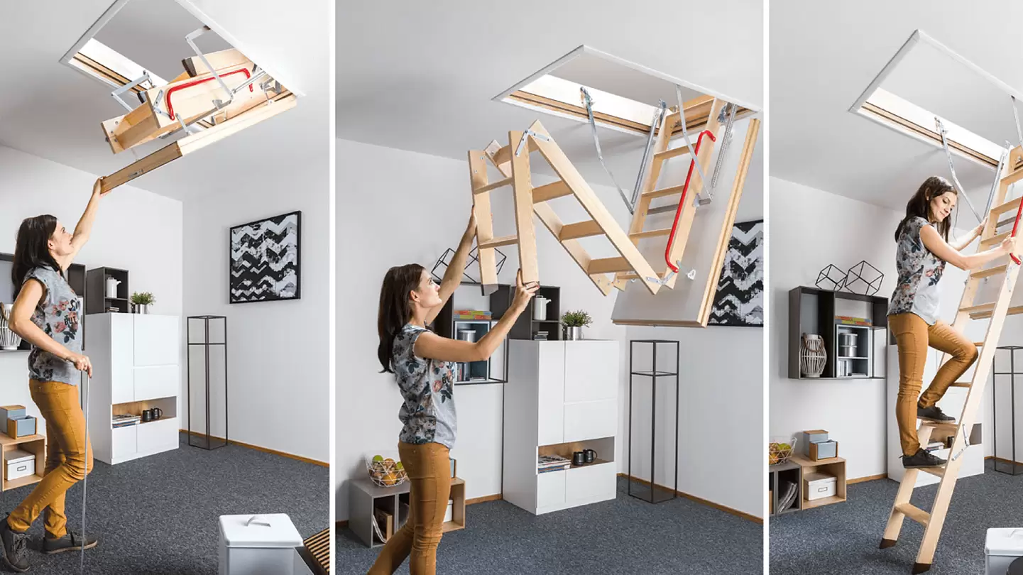 Хорошим вариантом является складная чердачная система, которую можно прикрепить к потолку и разложить, когда вам нужно подняться наверх. Он состоит из нескольких частей, сшитых вместе, с различными механизмами складывания: