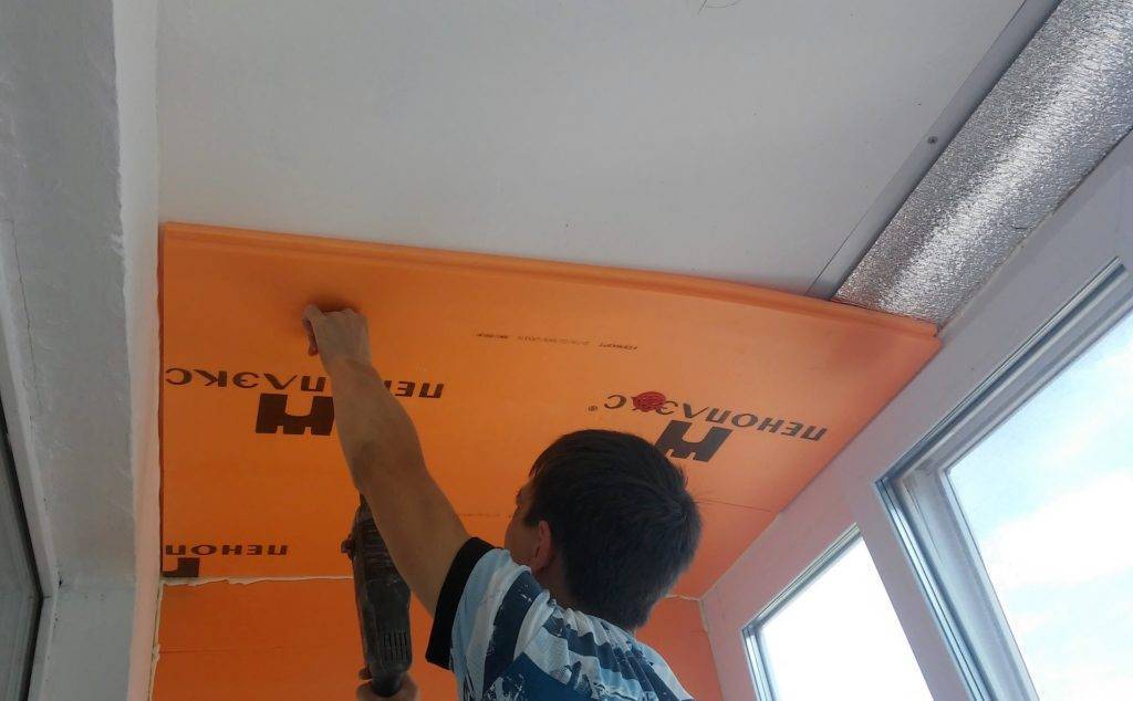 Фольгированный материал должен полностью закрывать пеноплекс, но не выходить за рамки балкона. Нельзя допускать образования складок, скомканных участков, просветов.
