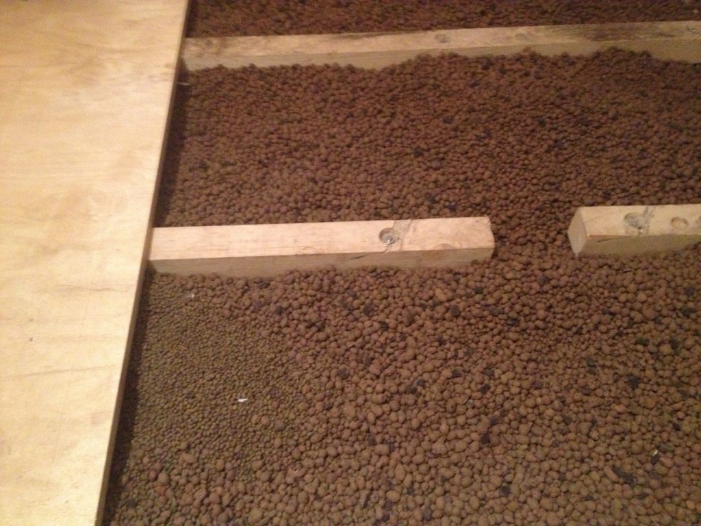 Керамзит применяют в бетонной стяжке, а также из него можно сформировать стяжку сухого типа, когда керамзитовая засыпка закрывается гипсоволоконными плитами.