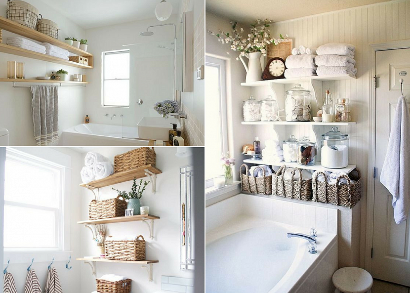 - вместо закрытых шкафчиков подвесьте в ванной легкие открытые деревянные полочки;
