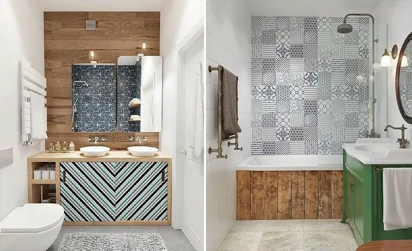 Этот стиль также может появиться в очень современной ванной комнате. Узорчатые плитки или элементы мозаики для ванной придадут пространству для купания инновационный характер.