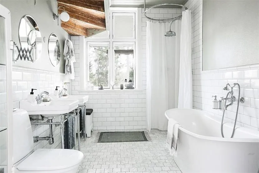 Конечно, вряд ли в магазинах сантехники вам удастся найти колоритную ванну в этом стиле или другую сантехнику. Но, соблюдая правила этого северного дизайна, мы можем выбрать подходящую сантехнику из предложений нашего строительного рынка. Прежде всего, это должна быть отдельно стоящая ванна овальной формы с белым корпусом.