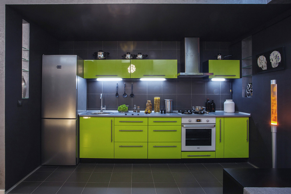1. Угловая кухня вдоль двух перпендикулярных стен