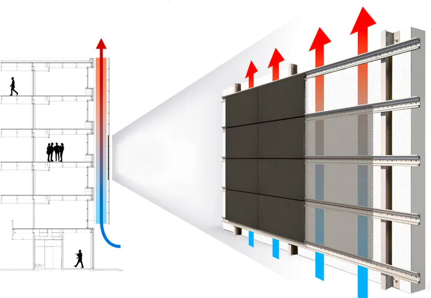 Стены строения «дышат», то есть частицы воздуха в определённом количестве проникают через них. В зимнее время года, когда на улице минус 30, а дома плюс 20, моментально остывающий тёплый воздух из помещения оседает на наружных стенах. Вентилируемые конструкции позволяют сместить точку оседания паров. В этом случае они будут задерживаться на мембране или внутренней стороне облицовки. Оттуда, с наступлением тепла они испаряются под воздействием вентиляции.
