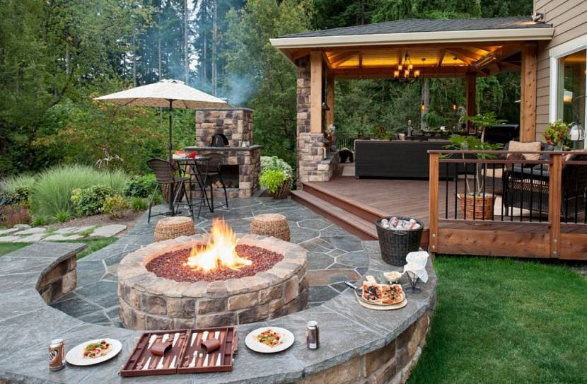 - декоративные изгороди, садовые лестницы и подпорные стенки (особенно на участках со сложным рельефом), камин.