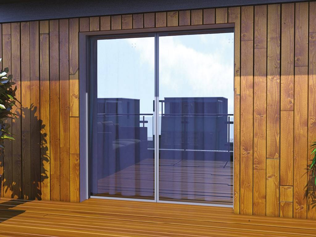- Раздвижные двери — хороший вариант для дома, где нет навеса или козырька. Стеклянная дверь красиво смотрится в коттедже и из дома ведет прямо в сад. Механизм как бы заезжает за стену при открытии, что очень удобно, если платформа входной группы не очень большая.