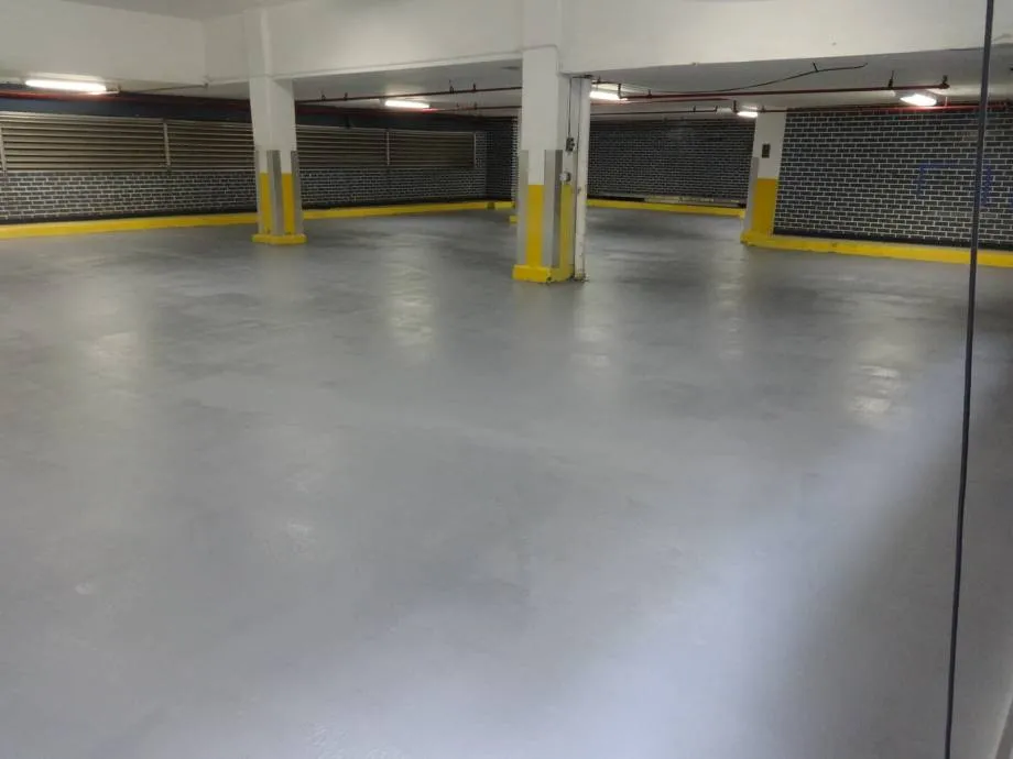Старый бетон до окрашивания тщательно подготавливается – выбоинки заделываются шпаклевкой, горбы, если они есть, убираются. После нужно будет пропылесосить всю площадь. Влажность старого покрытия на бетонной основе должна быть не более 4%, иначе эпоксидка начнет расслаиваться.