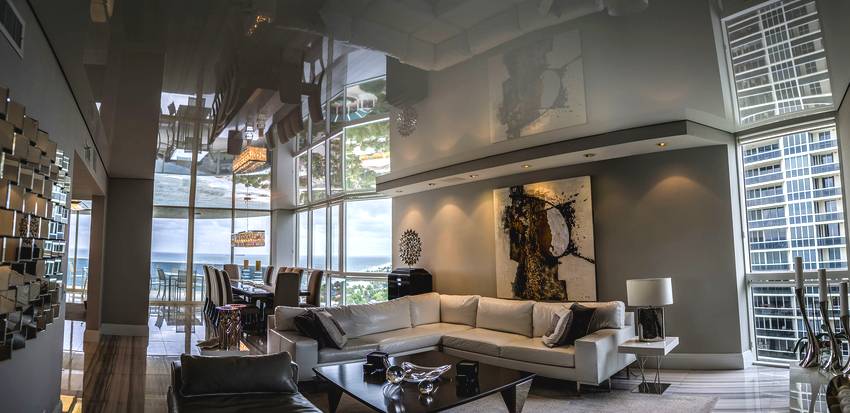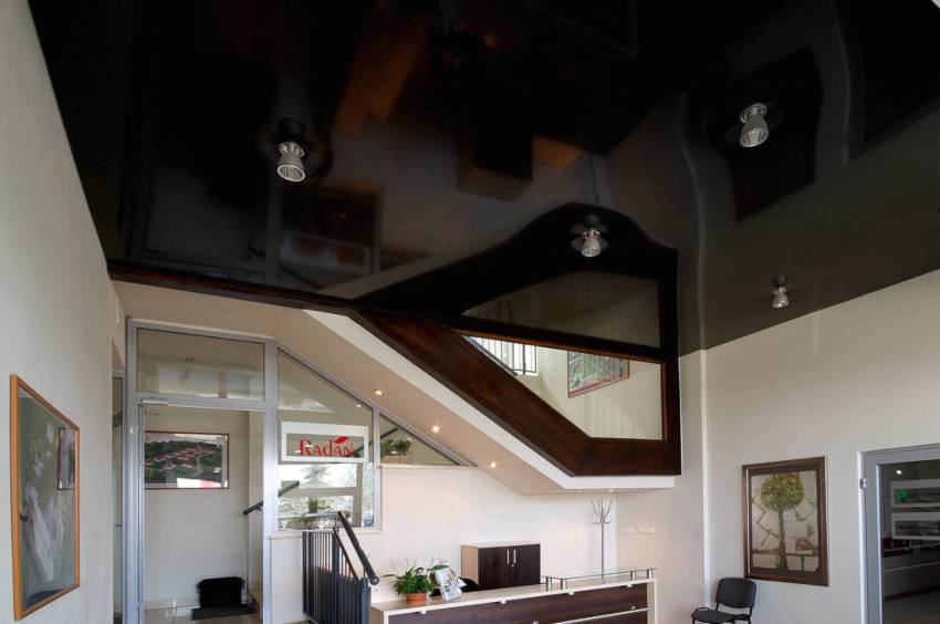 Благодаря гладкой поверхности, глянцевый потолок практичен в уходе, так как на нём практически не оседает пыль.