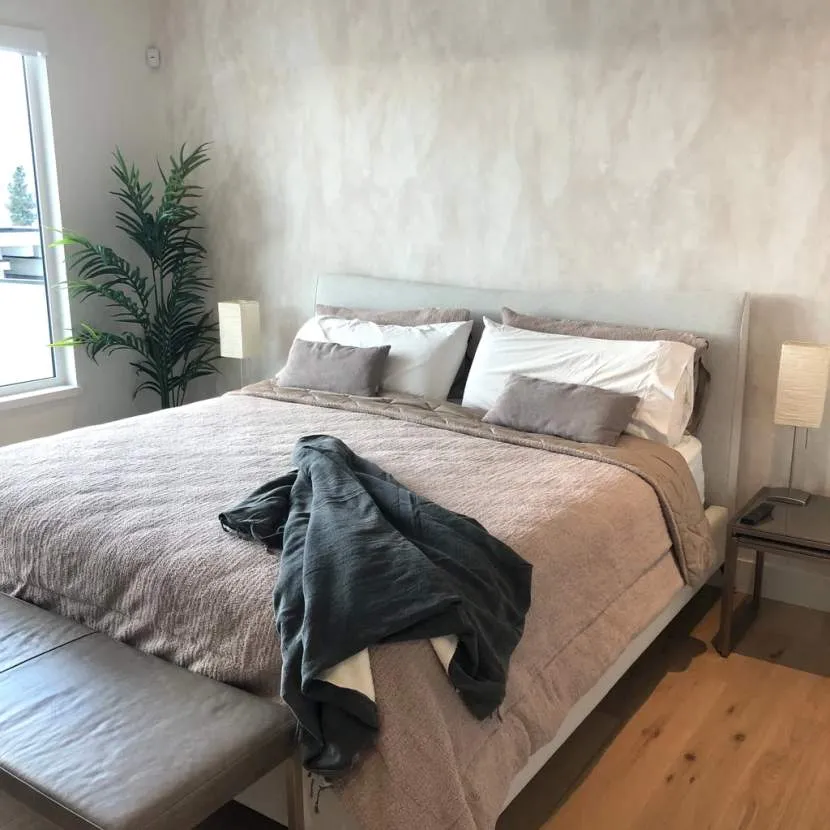 Обои в стиле «японди» (Japandi). Декор в этом стиле органично сочетает японскую графичность и скандинавскую домашнюю атмосферу. Цветовая гамма такого декора обычно спокойная, выдержанная, оттенки неяркие, но и не пастельные. Интересный вариант – однотонные обои, имитирующие текстиль или камень.