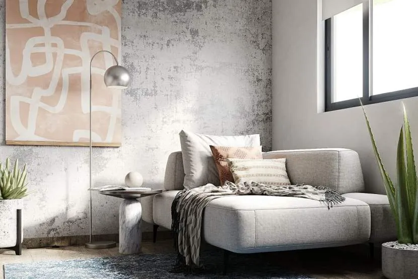 Бетонный рисунок. Декор, имитирующий бетонную поверхность, станет лучшим выбором для того, кто хочет получить максимально современный интерьер с холодной и привлекательной атмосферой. Обои под бетон (или штукатурку) подходят не только для ценителей стиля лофт; они универсальны, и органично впишутся в любую обстановку.