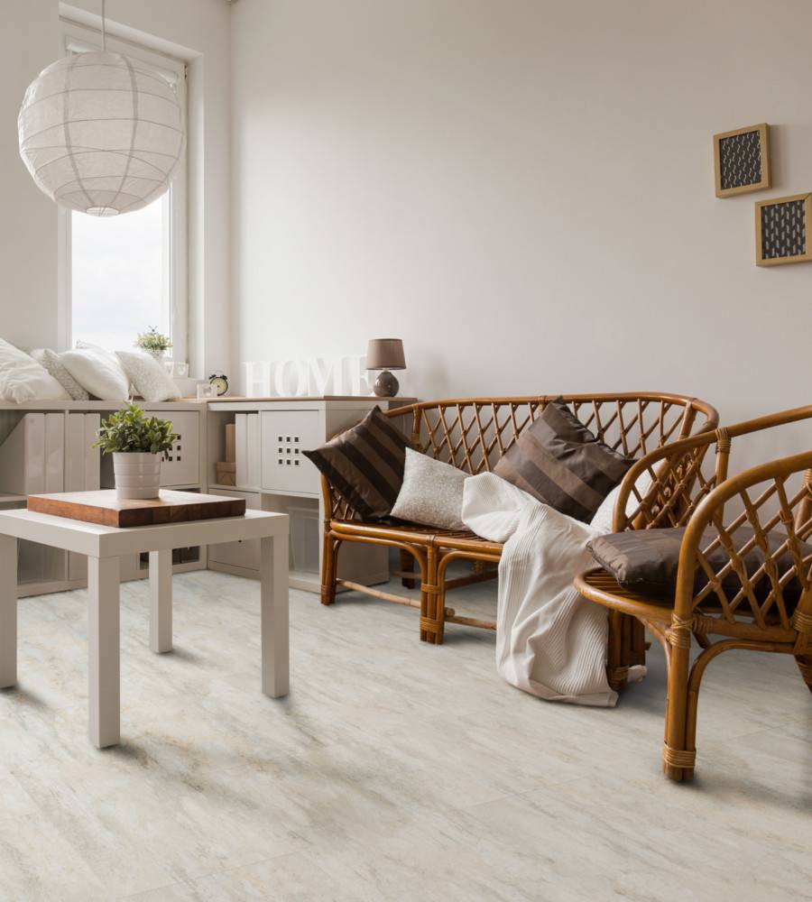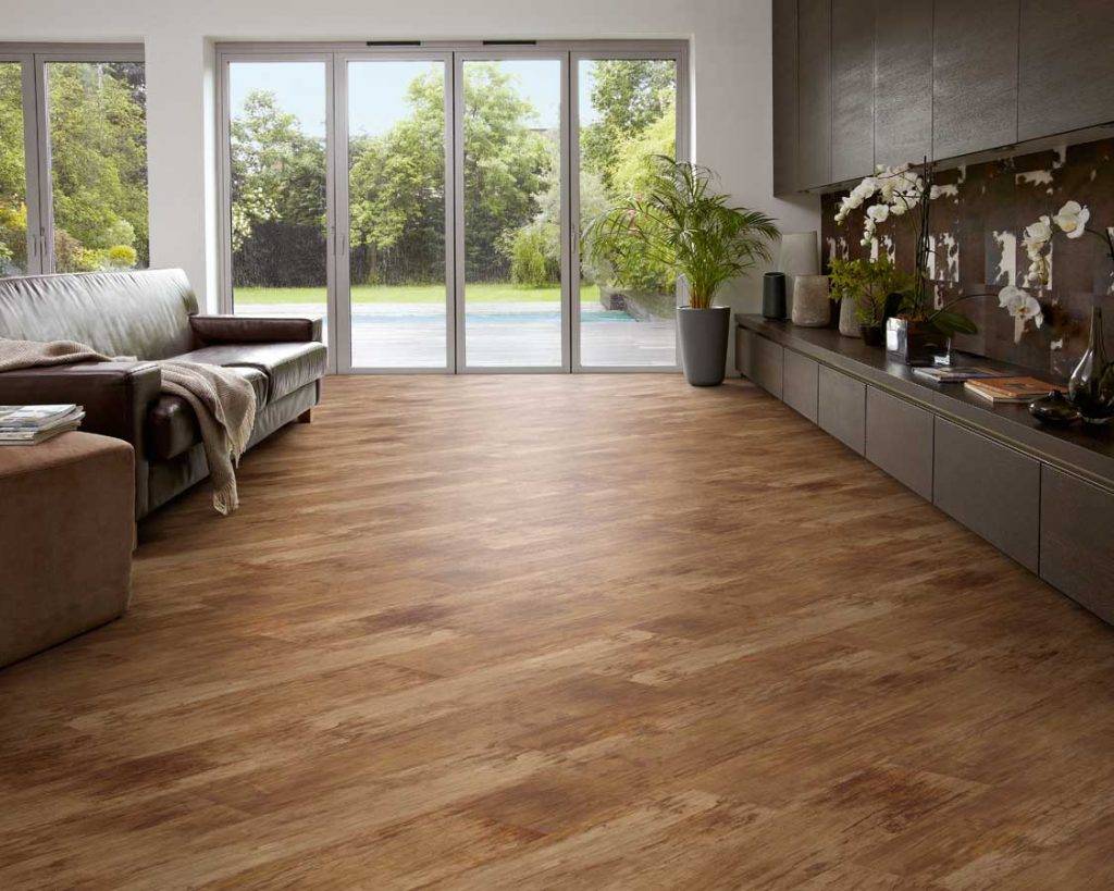 прочность и износостойкость. Производители заявляют, что материал спокойно выдерживает воздействие тяжелых предметов мебели и даже тренажеров, устойчив к повреждениям, и подтверждают слова долгосрочной гарантией. Подобная прочность обеспечивается наличием стеклохолста и кварца в составе материала и его многослойной структурой, что приближает материал к кварцевому агломерату;