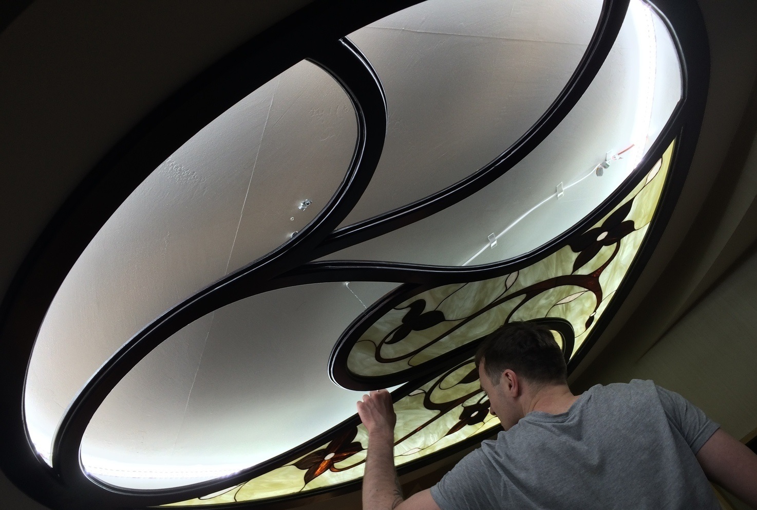 Монтаж потолочного витража, выполненного по технике Тиффани