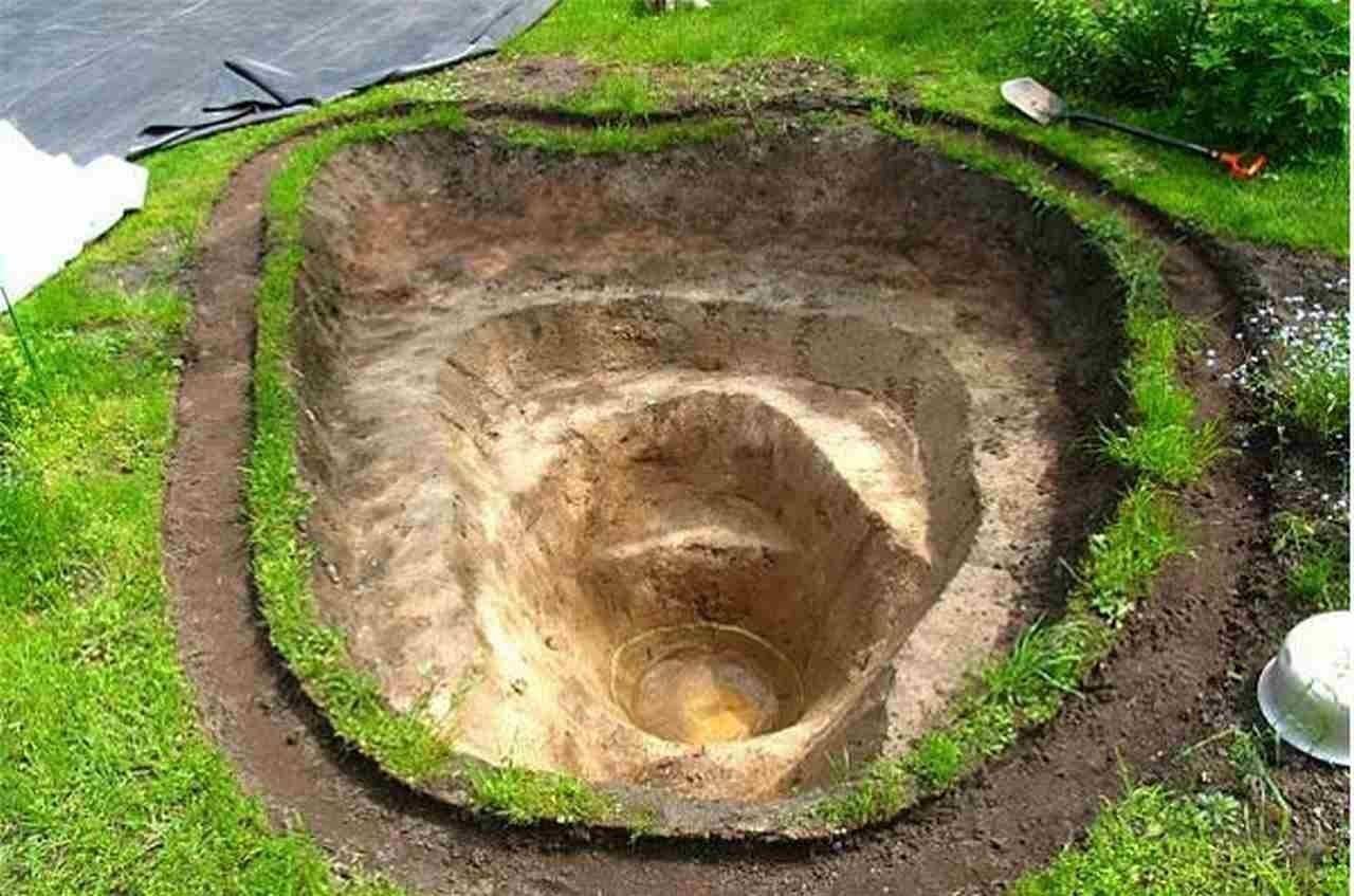 - Выройте яму, очистите от камней, уплотните дно.