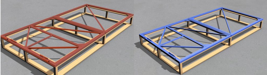 В середину рамы приваривают горизонтальную поперечину и от нее две диагональные распорки — прочная конструкция при минимальных затратах