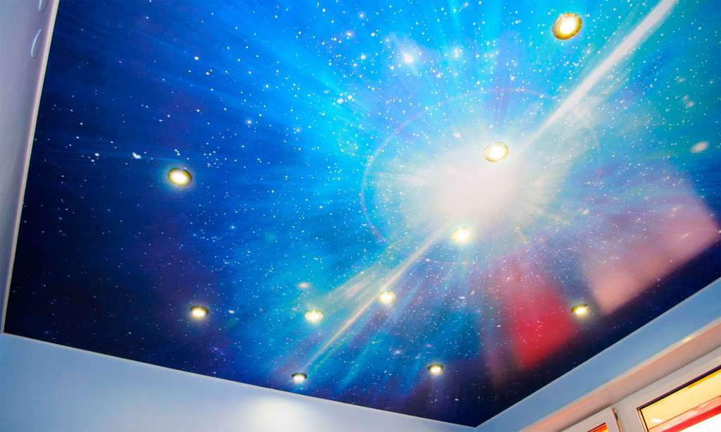 - широкий выбор цветовой гаммы потолков: от пастельных однотонных до ярких с узором;