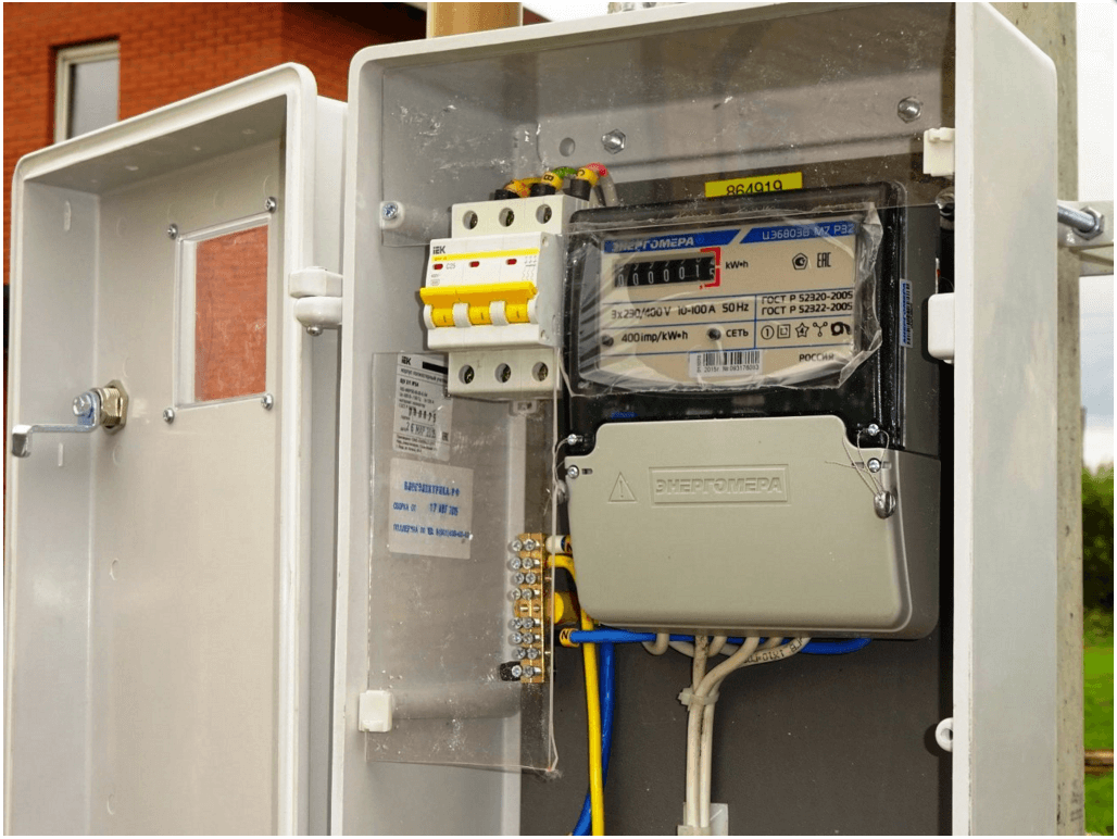 Прибор учета и аппараты защиты, такие как автоматический выключатель, УЗО должны находиться в герметичном боксе, препятствующему попаданию влаги и посторонних предметов. Также необходимо организовать устройство заземления, заземлить щиток и сделать повторное заземление нуля от ВЛЭП (ПУЭ глава 1.7. п 1.7.61.), организовать систему TN-C-S (ПУЭ глава 7.1. п. 7.1.13). Не забудьте предпринять все меры безопасности для производства работ.