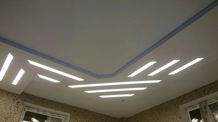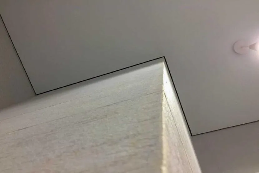 Однако, есть и недостаток: за счет плотного прилегания к потолку в паз нельзя вмонтировать светодиодную ленту-подсветку. Но это несущественно, поскольку решается достаточно просто: ниже закрепляется плинтус и к нему монтируется светотехника.