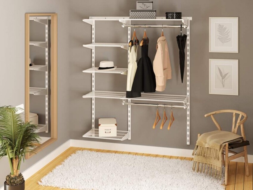 Гардеробная Эльфа (Elfa) — это целая комната, внутрь которой встраиваются полки, ящики, корзины, вешалки, брючницы и крючки для того, чтобы вешать аксессуары и сумки. Элементы шкафов выполняются из прочных материалов, благодаря чему корзины или полки способны выдержать нагрузки.