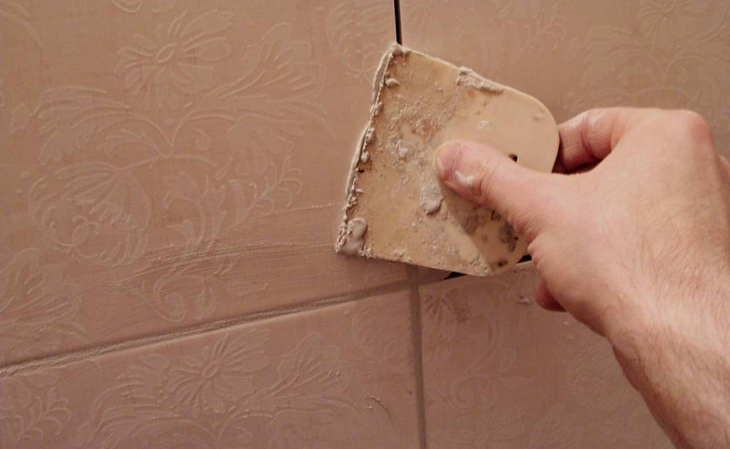 Необходимо специальным скребком удалить старую затирку. Для этого ее сначала размягчают водой, а затем убирают
