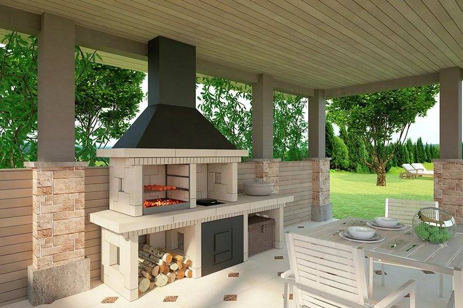 Кроме этого, вытяжка способствует выводу копоти, которая может образовать на потолке беседки довольно толстый слой. Мало приятного, когда в процессе приготовления или приема пищи сверху начинает сыпаться черные частицы нагара.