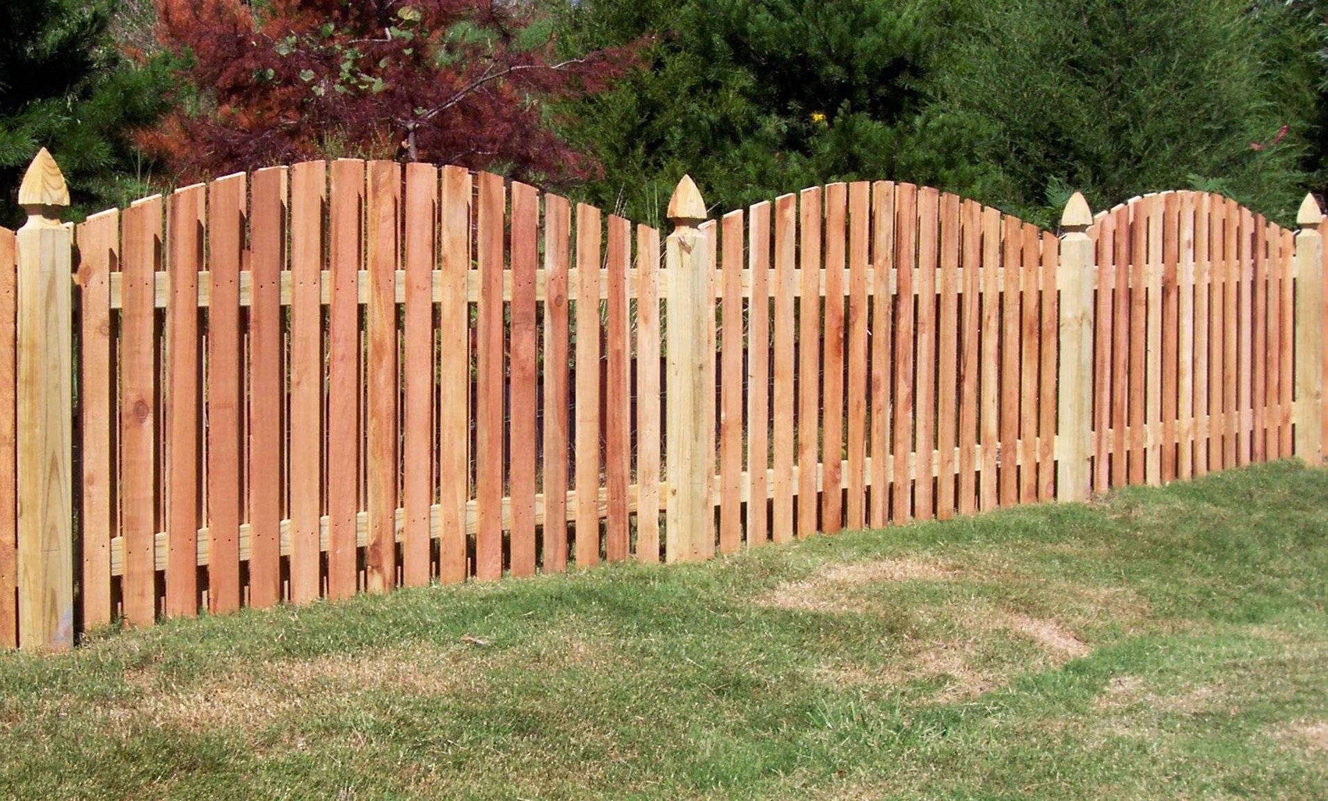 Самый распространенный вариант деревянного забора, который закреплен на бетонном или каменном фундаменте.