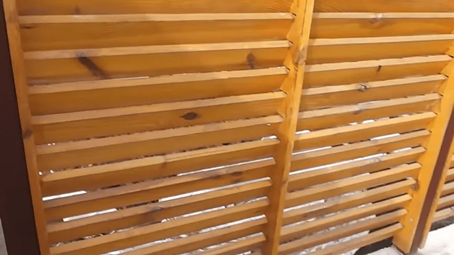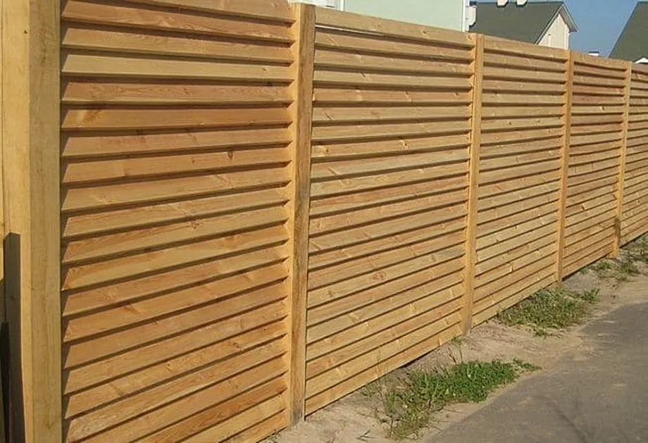 Но этот подход имеет и недостаток – непривлекательный вид установленного забора. Причем этим деревянным ламелям требуется специальная пропитка разными средствами, направленная на увеличение времени службы.