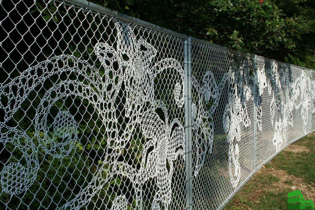 Еще одним видом декора является фотосетка. Она представляет собой полимерное полотно с маленькими ячейками, на котором благодаря использованию специальных технологий можно разместить любое изображение. В отличие от обычного баннера данная конструкция будет пропускать воздух и свет, что является острой необходимостью при наличии светолюбивых растений на участке. Кроме того, с ней вы можете не опасаться за проникновение любопытных взглядов – ячейки настолько малы, что сложно будет рассмотреть даже силуэты.