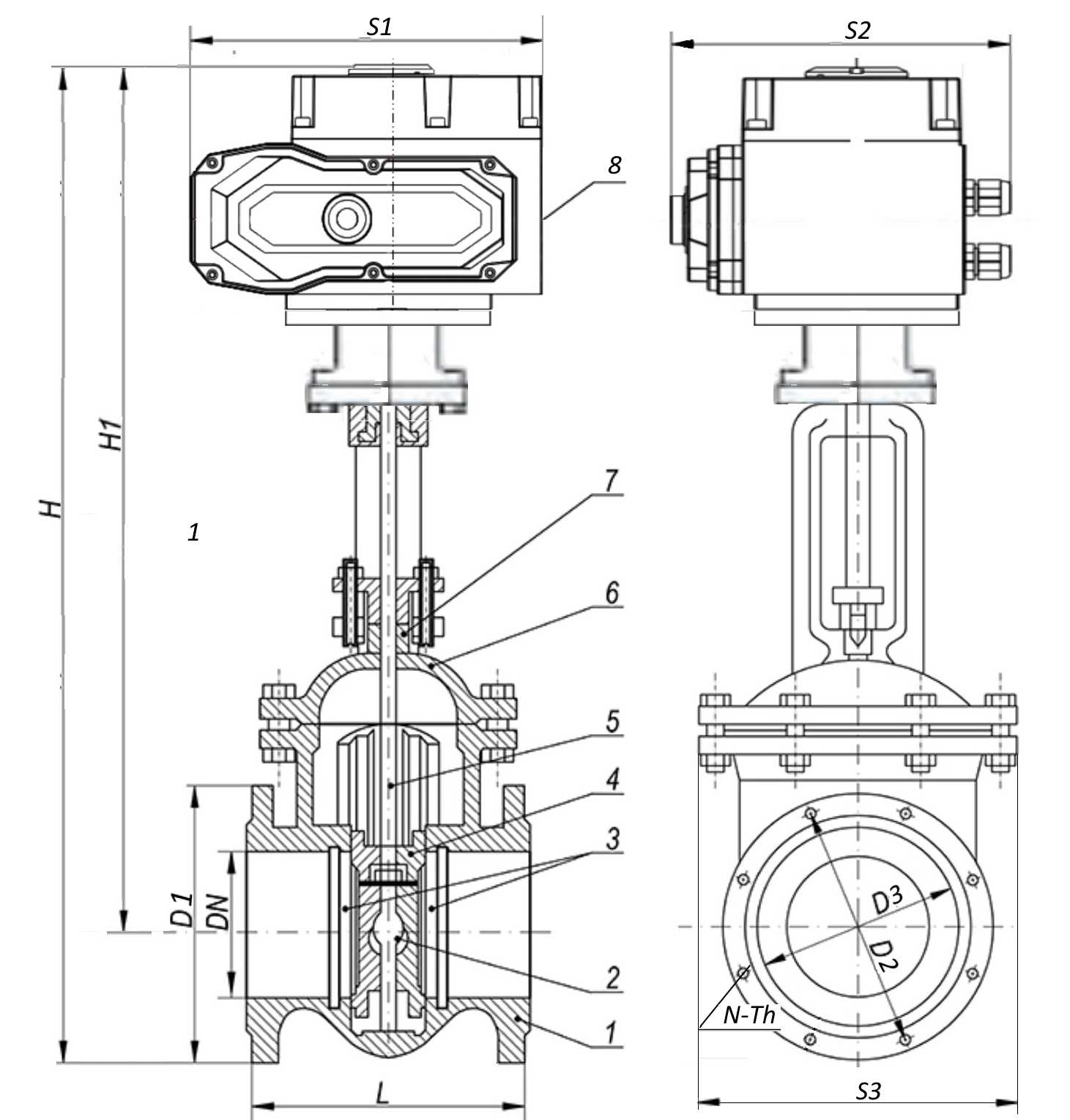 Задвижки оснащаются асинхронным электрическим двигателем (АСВ) с ротором короткозамкнутого типа. Мотор сочленен с червячным редуктором. Электропривод включает в себя выключатель ВП-700, а также ручной дублер.