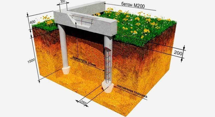 Столбчатые опоры отличаются невысокой несущей способностью. Возможно устройство монолитных столбов или их сборка компактных бетонных блоков. Оба варианта прекрасно подходят для выполнения работ своими руками.