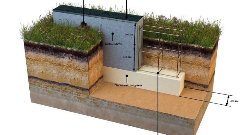 - Затем делается подготовка, для которой достаточно слоя бетона в 10 см. Для этой работы можно взять «тощий бетон» и использовать профилированную мембрану. Готовую подошву обязательно подвергают гидроизоляции.