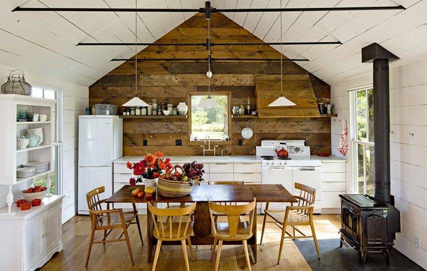 Комбинированными также называются кухни, сделанные из разных материалов – например, до уровня окон идет камень или кирпич, а выше – брусы, каркасные технологии или панели.