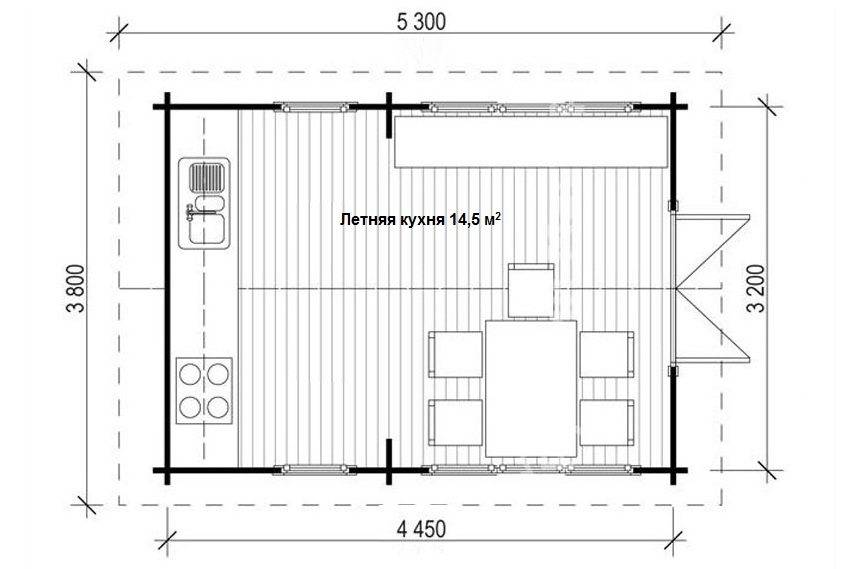 Проект отдельно стоящей летней кухни площадью 14,5 кв.м