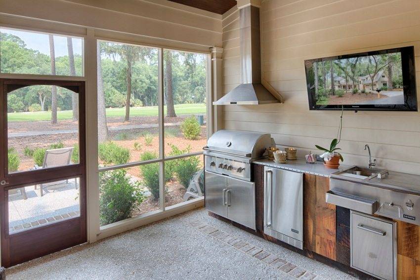 Частично открытая летняя кухня, примыкающая к одной из сторон дома