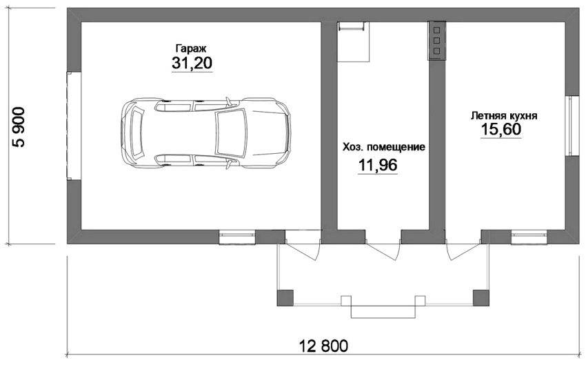 В этом случае две постройки можно выполнить на одном фундаменте и даже с общей стенкой, что значительно упрощает и удешевляет смету строительства.
