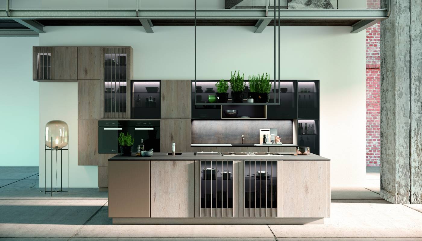 Кухня с фасадами из МДФ, покрытыми шпоном