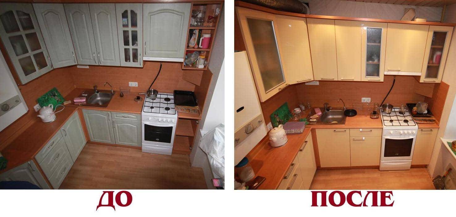 Необходимая замена фасадов на кухонном гарнитуре может выполняться по одному из вариантов: