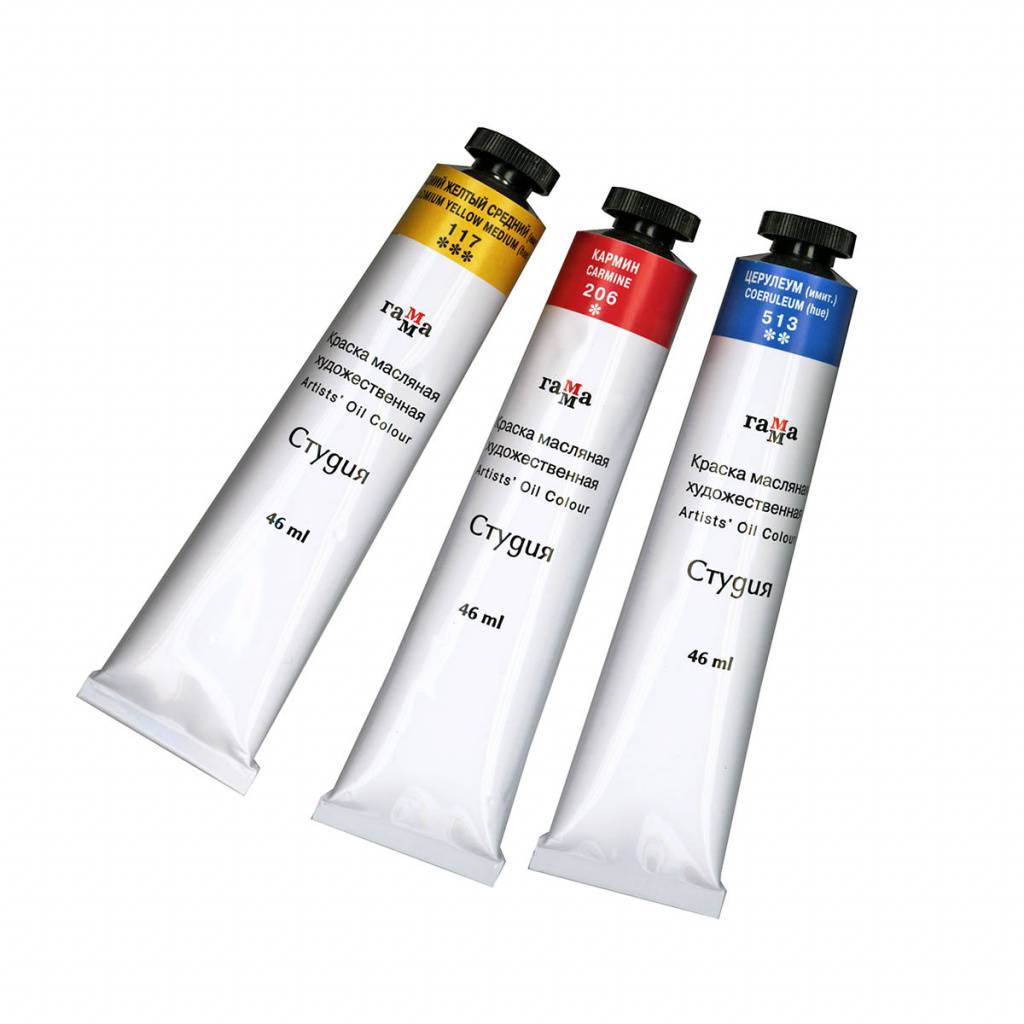 Масляные краски «Студия» от отечественной Гаммы базовой цветовой палитры созданы с применением искусственных пигментов, имитирующим натуральные. От этого цвета получаются не в полной мере насыщенными, но для начинающих художников их будет вполне достаточно. Кремовая текстура удобна для нанесения первых мазков на этапе «набивания» руки.